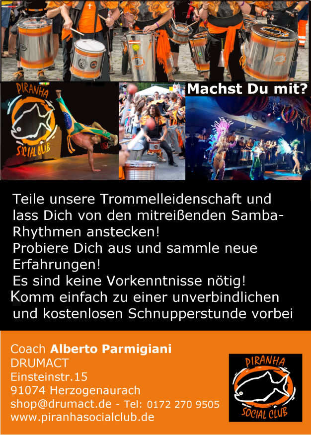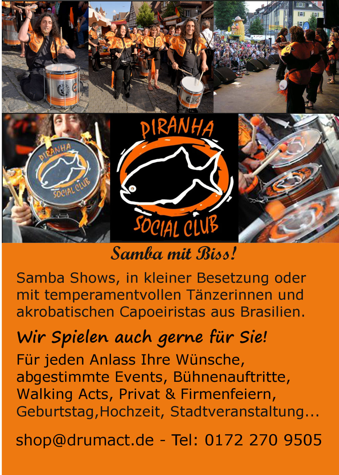 - Der Zugang zur Sambagruppe Piranha Social Club ist Möglich nur durch den regelmäßigen Besuch der Sambaschule.
